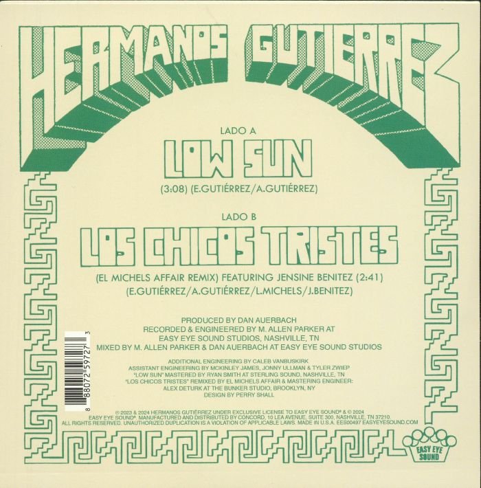 Antes del lanzamiento de su nuevo álbum Sonido Cosmico, los Hermanos Gutiérrez regresan con un sencillo apasionante que muestra su afinidad por los melancólicos soliloquios de guitarra en un corto y dulce 7″. El sonido de los hermanos tiene sus raíces en el rock n roll latinoamericano de los años 50, todo trémolo tembloroso y reverberación lánguida como carcasa para sus fascinantes melodías. «Low Sun» captura ese momento melancólico a medida que el día se acorta de manera evocadora, lo que lo convierte en un disco preparado para muchos momentos sentimentales, ya sea que estés reproduciendo el disco para ti mismo o para una audiencia de relajantes afines que aprecian las vibraciones baleares provenientes del hemisferio sur.